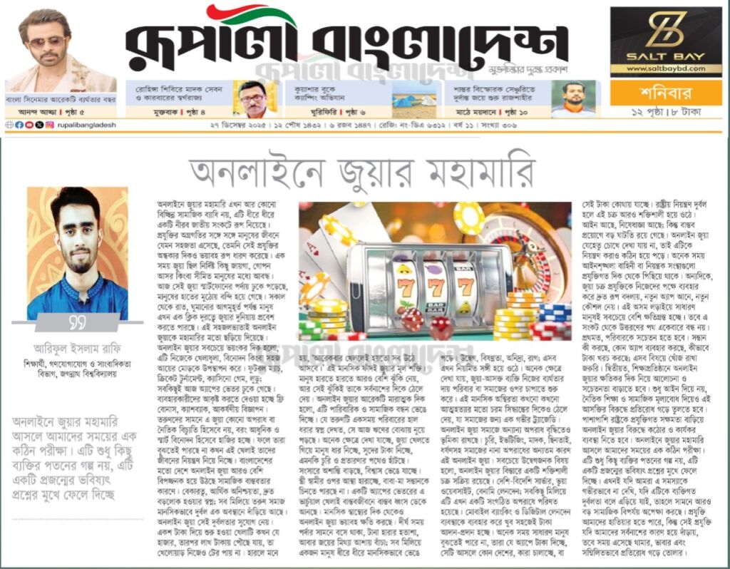 অনলাইনে জুয়ার মহামারি আসলে আমাদের সময়ের এক কঠিন পরীক্ষা। এটি শুধু কিছু ব্যক্তির পতনের গল্প নয়, এটি একটি প্রজন্মের ভবিষ্যৎ প্রশ্নের মুখে ফেলে দিচ্ছে। এখনই যদি আমরা এই সমস্যাকে গভীরভাবে না দেখি, যদি এটিকে ব্যক্তিগত দুর্বলতা বলে এড়িয়ে যাই, তাহলে সামনে আরও বড় সামাজিক বিপর্যয় অপেক্ষা করছে। প্রযুক্তি আমাদের হাতিয়ার হতে পারে, কিন্তু সেই প্রযুক্তি যদি আমাদের সর্বনাশের কারণ হয়ে দাঁড়ায়, তবে সময় এসেছে থামার, ভাবার এবং সম্মিলিতভাবে প্রতিরোধ গড়ে তোলার।