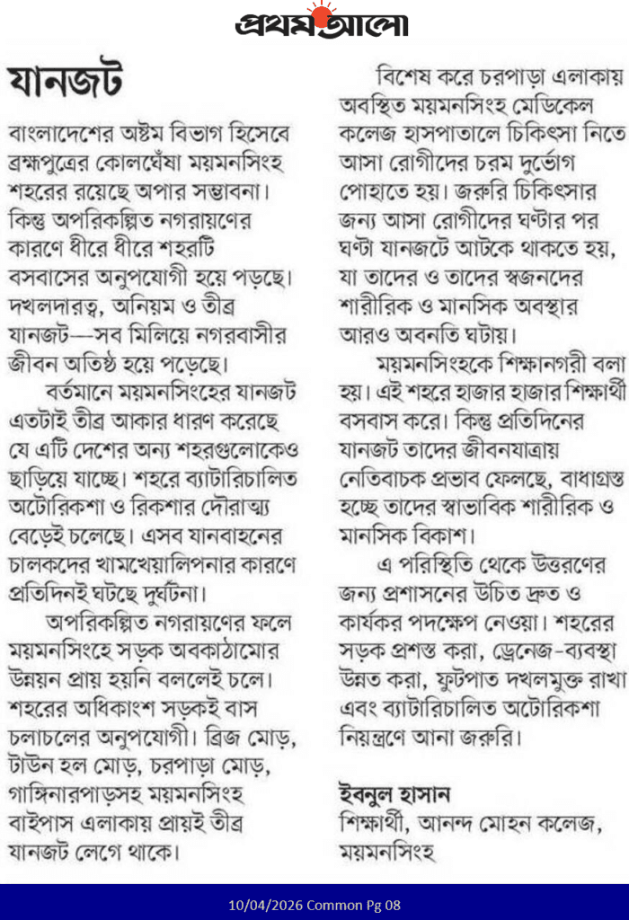 এই লেখাটি ১০ এপ্রিল ২০২৬ তারিখে দৈনিক প্রথম আলো পত্রিকায় প্রকাশিত।