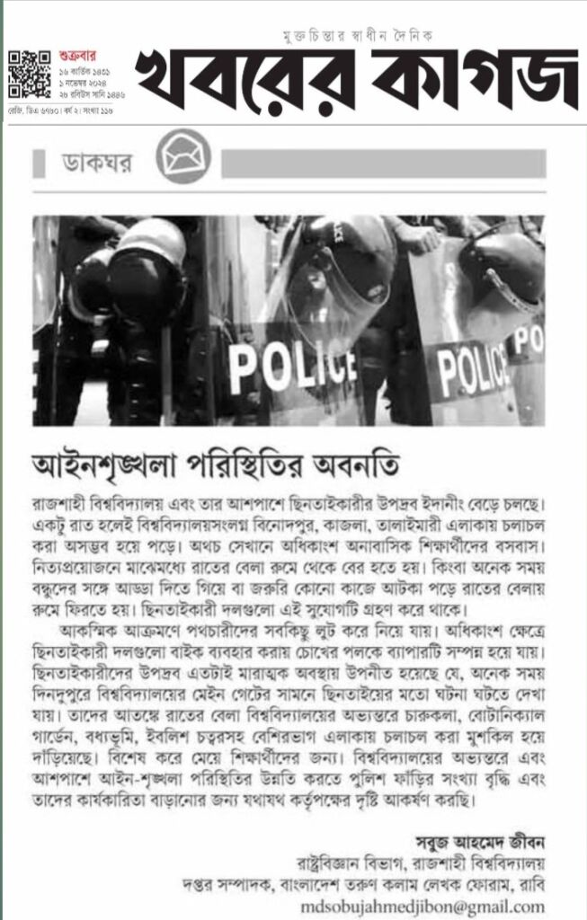লেখক: সাংগঠনিক সম্পাদক, রাজশাহী বিশ্ববিদ্যালয়।