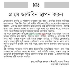 গ্রামে ডাস্টবিন স্থাপন করুন
