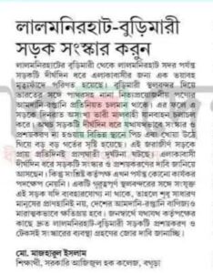 লালমনিরহাট – বুড়িমারী সড়ক সংস্কার করুন