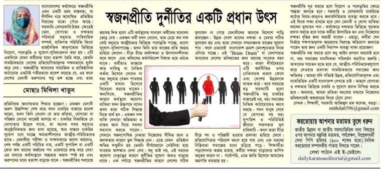 স্বজনপ্রীতি দুর্নীতির একটি প্রধান উৎস