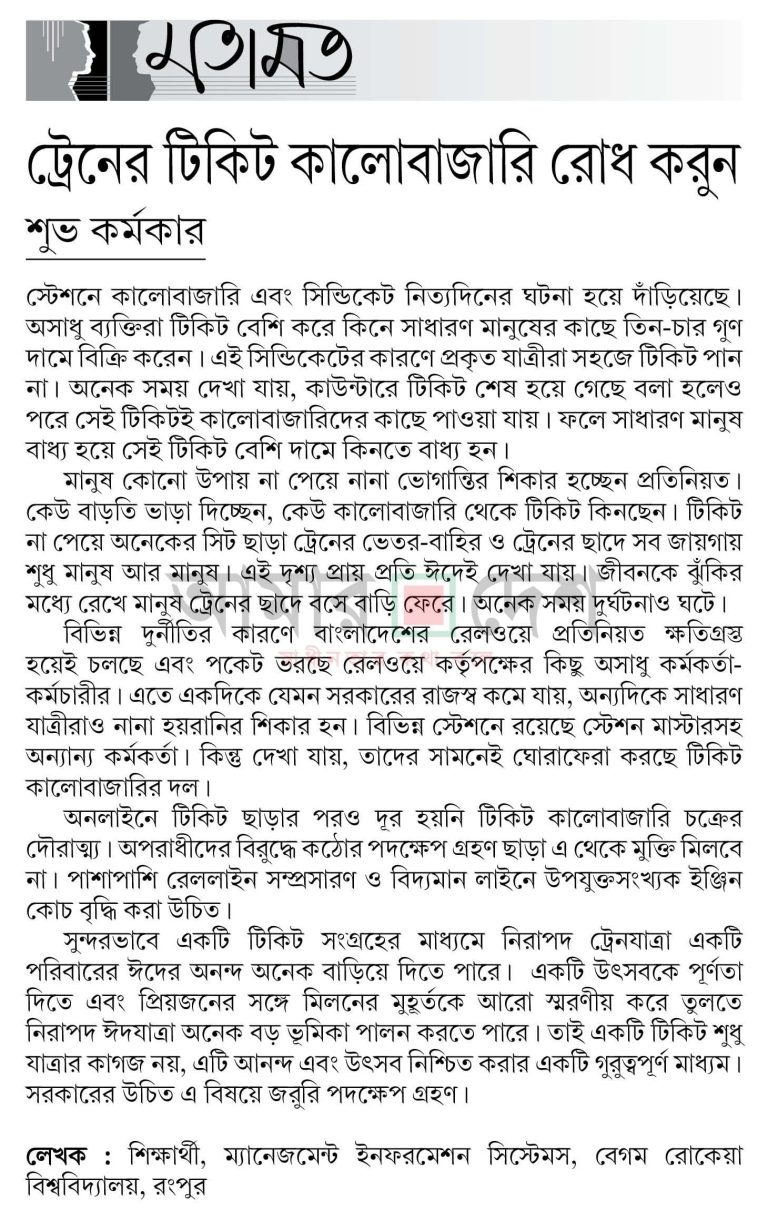 ট্রেনের টিকিট কালোবাজারি রোধ করুন