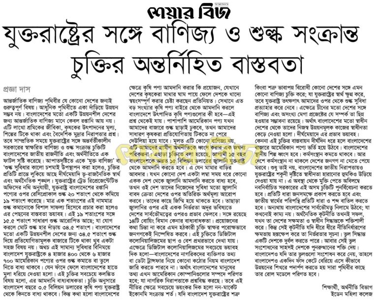 যুক্তরাষ্ট্রের সঙ্গে শুল্ক ও বাণিজ্য সংক্রান্ত চুক্তির অন্তর্নিহিত বাস্তবতা