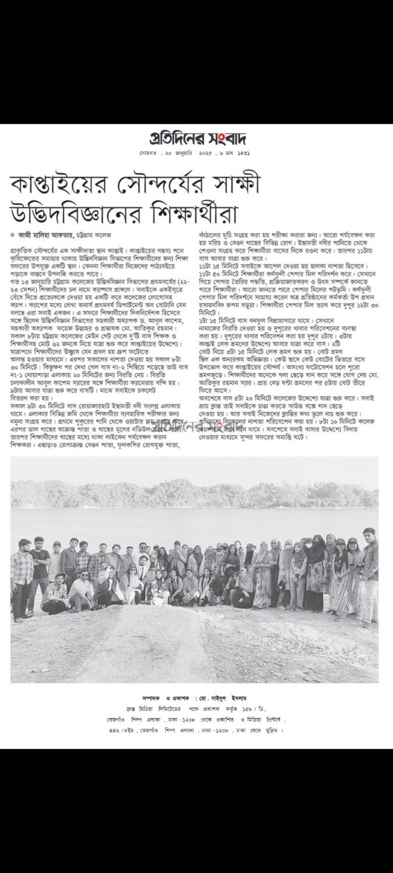 কাপ্তাইয়ের সৌন্দর্যের সাক্ষী উদ্ভিদবিজ্ঞানের শিক্ষার্থীরা